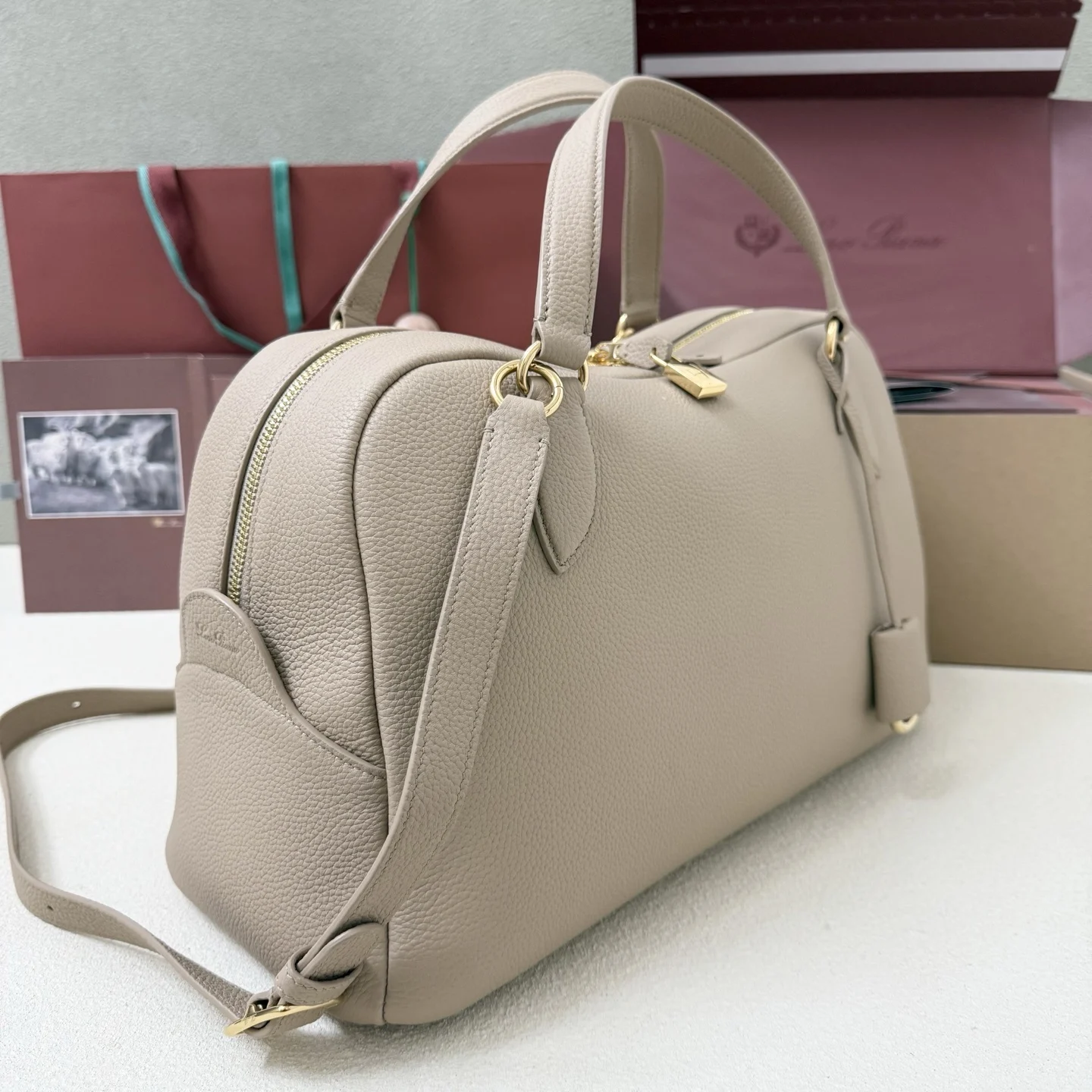 Here presented in a medium size, the Needle bag seamlessly melds style, functionality, and elegance. It is steeped in the Maison’s textile heritage and has an incredible sensoriality akin to Loro Piana’s exquisite fabrics. Crafted from supple, fine-grained leather, its silhouette is accented with signature charms, including a padlock with a gemstone in a Baby Cashmere hue. It is ideally suited for versatile wear over the shoulder or in hand.