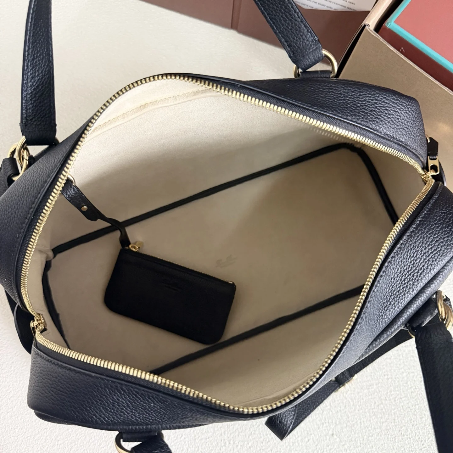 Internal leather pouch with lobster clasp